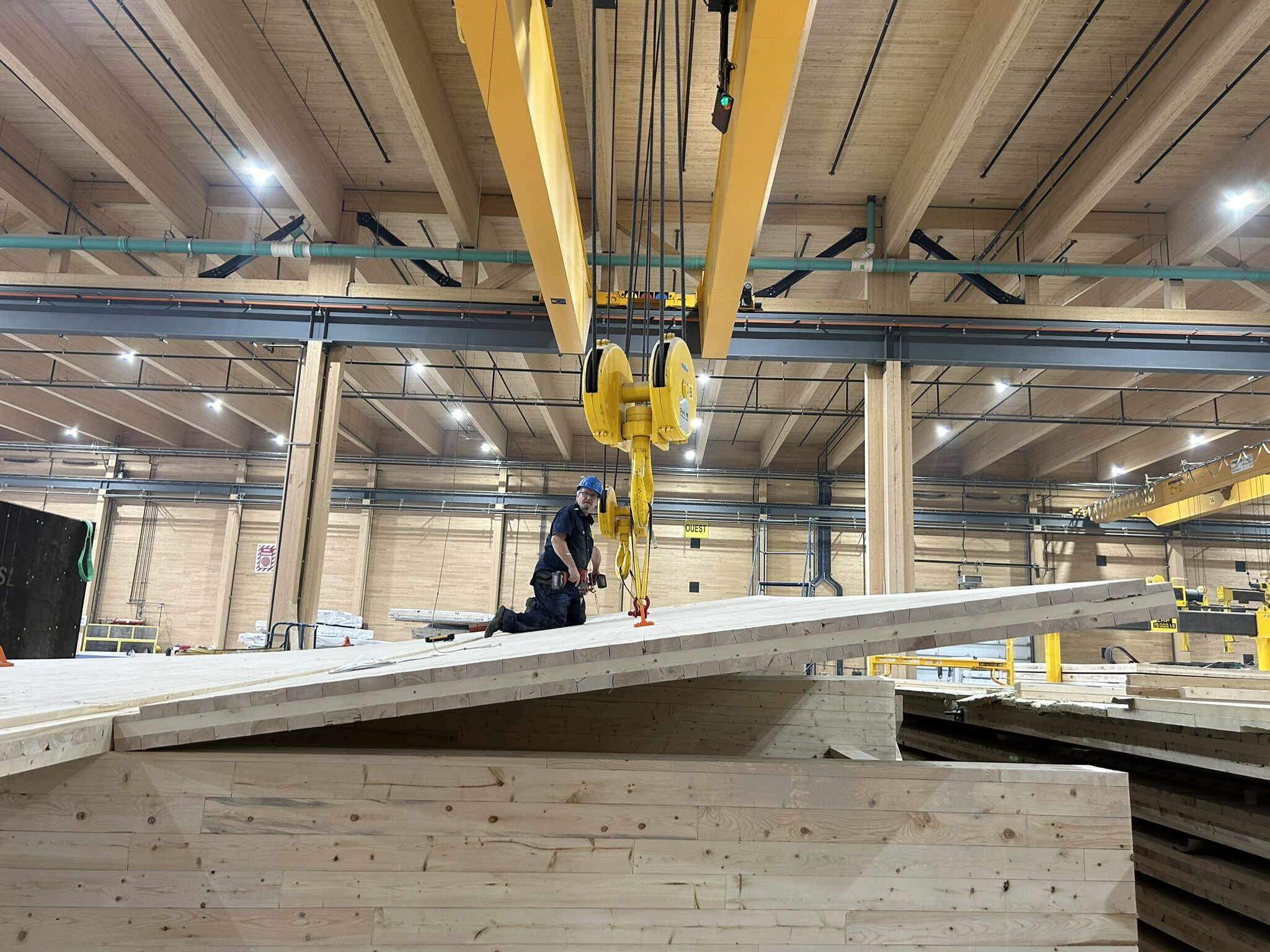 La complexité résidait dans la mise à plat et le positionnement précis de chaque panneau CLT, dont les plis et torsions devaient être anticipés dès la conception.